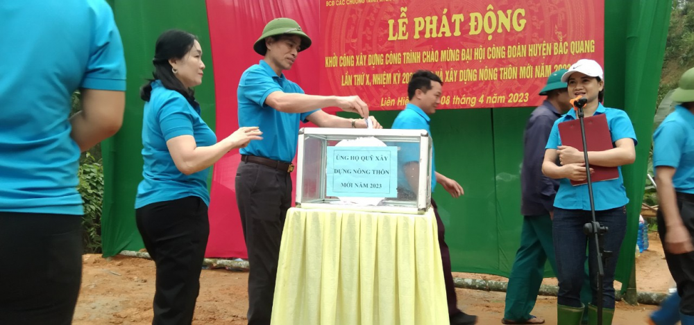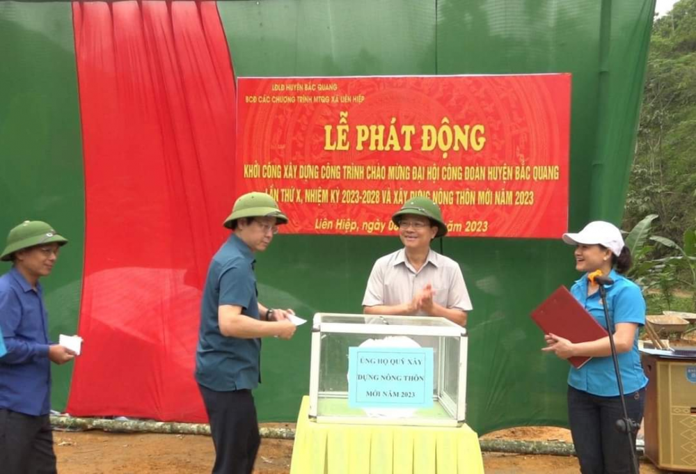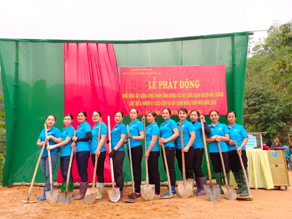 Ngày 8-4, tại xã Liên Hiệp (huyện Bắc Quang, tỉnh Hà Giang), Liên đoàn Lao động huyện Bắc Quang đã tổ chức Lễ phát động khởi công xây dựng công trình chào mừng Đại hội công đoàn huyện Bắc Quang lần thứ X, nhiệm kỳ 2023-2028 và xây dựng NTM năm 2023.