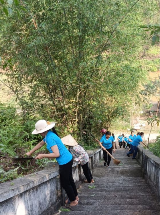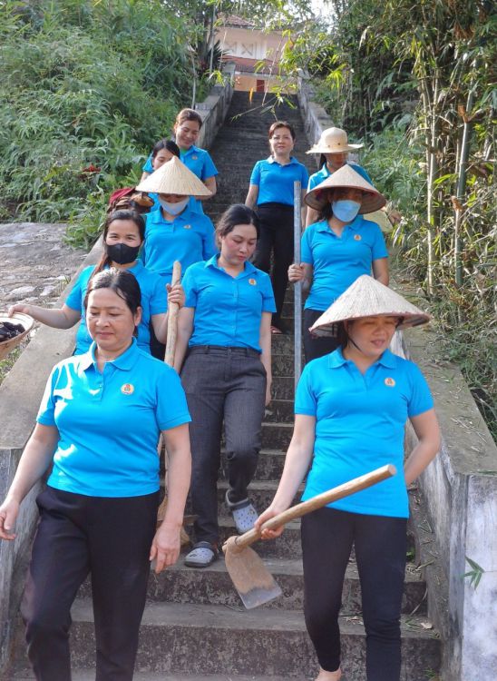 ĐOÀN VIÊN CÔNG ĐOÀN TRƯỜNG MẦM NON LIÊN HIỆP THAM GIA LAO ĐỘNG KHU NHÀ BIA TƯỞNG NIỆM CỦA XÃ