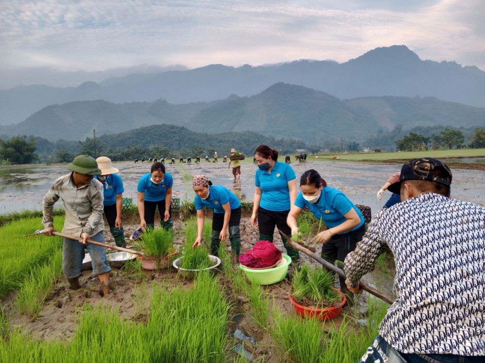 Ảnh 3 và 4: Đoàn viên công đoàn cùng giúp đỡ đoàn viên bị ốm đau bệnh tật