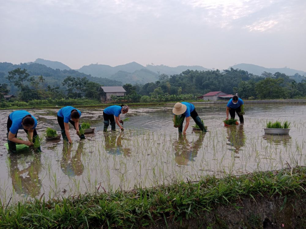 Thời điểm tháng 3 năm 2022 khi các trường trên địa bàn huyện được nghỉ học trực tiếp do dịch bệnh Covid-19 thì cán bộ quản lý, giáo viên, nhân viên nhà trường vẫn tiến hành thực hiện các nhiệm vụ về xây dựng cảnh quan môi trường, nhất là việc hoàn thiện vườn cổ tích để chuẩn bị cho buổi Lễ đón bằng công nhận. Để làm tốt điều đó và không để dịch bệnh Covid-19 lây lan tại nhà trường thì Ban giám hiệu nhà trường phân công cán bộ giáo viên, nhân viên làm các công việc theo từng nhóm nhỏ để thực hiện nhiệm vụ chung.