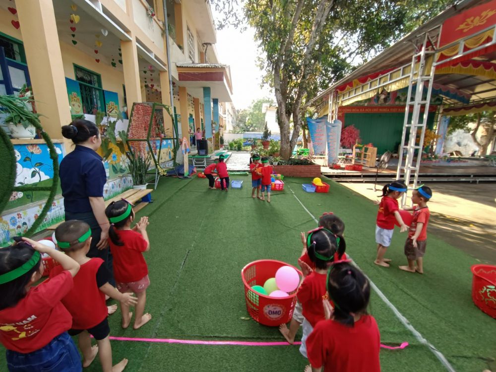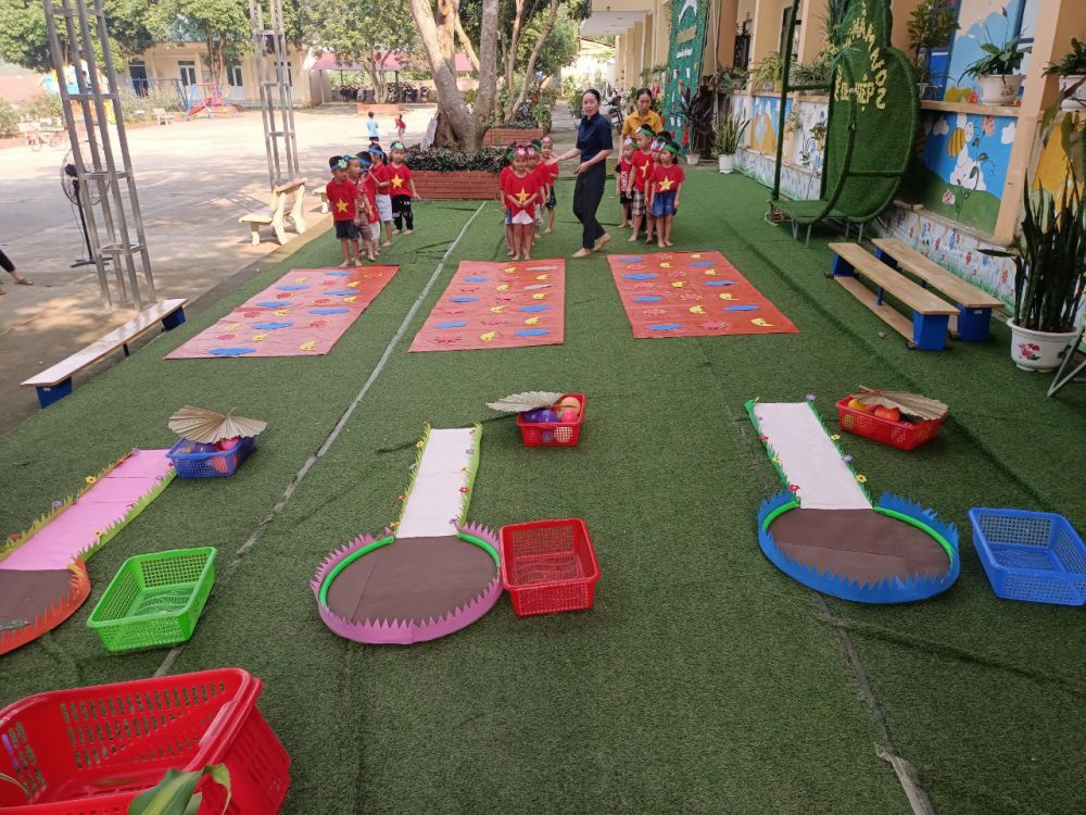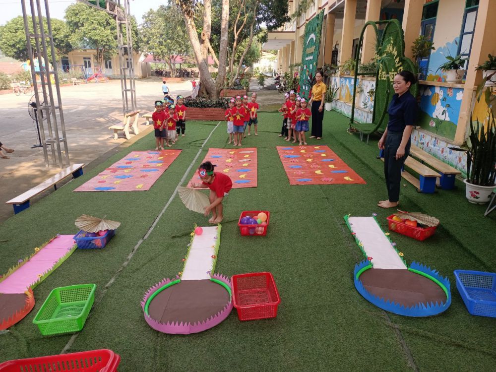 Trong tháng 5 năm học 2023 - 2024 nhà trường cùng tổ chuyên môn tiếp tục thăm lớp dự giờ, nâng cao năng lực chuyên môn của giáo viên, nhà trường thường xuyên khuyến khích giáo viên luôn tìm tòi và sáng tạo những đồ dùng dạy học tự làm và tận dụng những nguyên vật liệu sẵn có tại địa phương gần gũi với trẻ, từ những phế thải sinh động hấp dẫn giúp trẻ có được những giờ học, giờ chơi nhẹ nhàng qua các hoạt động trẻ được rèn kỹ năng sống, khơi dậy ở trẻ sự sẻ chia, lòng nhân ái, sự tự tin. Bên cạnh đó, các giáo viên tổ chức những tiết dạy theo quan điểm lấy trẻ làm trung tâm, trẻ được thỏa thích tìm tòi khám phá thế giới xung quanh, được hòa mình vào thế giới tự nhiên qua đó giúp phát triển nhân cách 1 cách toàn diện hơn.