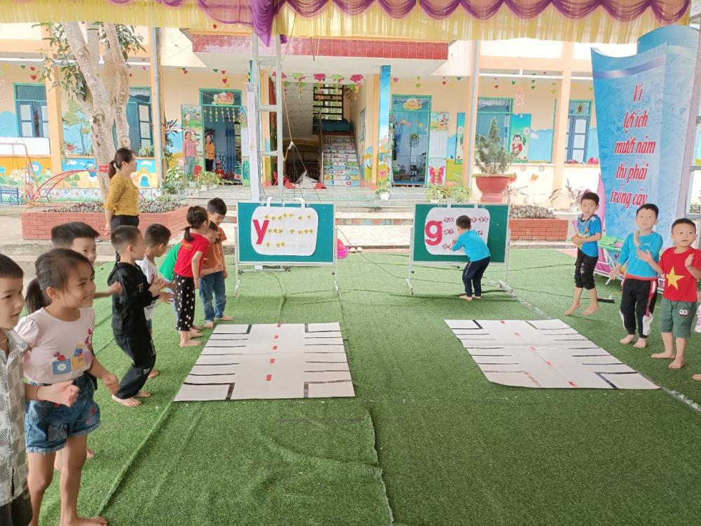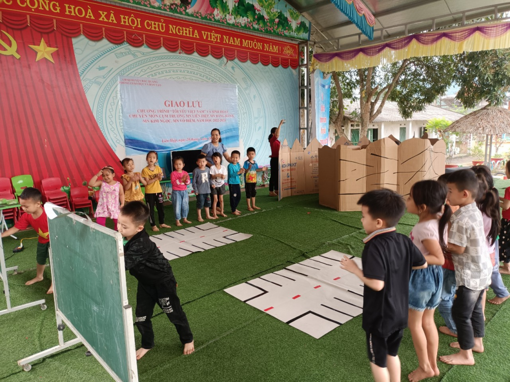 Trong tháng 4 năm học 2022-2023 nhà trường cùng tổ chuyên môn tiếp tục thăm lớp dự giờ, nâng cao năng lực chuyên môn của giáo viên, nhà trường thường xuyên khuyến khích giáo viên luôn tìm tòi và sáng tạo những đồ dùng dạy học tự làm và tận dụng những nguyên vật liệu sẵn có tại địa phương gần gũi với trẻ, từ những phế thải sinh động hấp dẫn giúp trẻ có được những giờ học, giờ chơi nhẹ nhàng qua các hoạt động trẻ được rèn kỹ năng sống, khơi dậy ở trẻ sự sẻ chia, lòng nhân ái, sự tự tin. Bên cạnh đó, các giáo viên tổ chức những tiết dạy theo quan điểm lấy trẻ làm trung tâm, trẻ được thỏa thích tìm tòi khám phá thế giới xung quanh, được hòa mình vào thế giới tự nhiên qua đó giúp phát triển nhân cách 1 cách toàn diện.